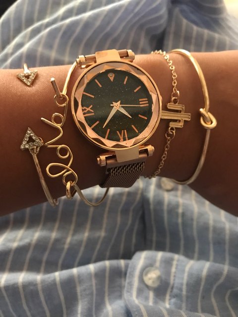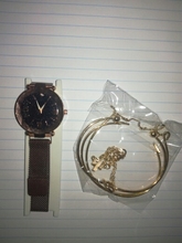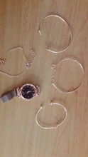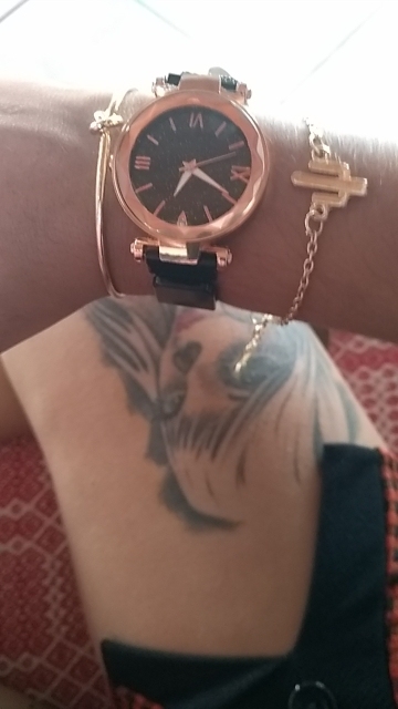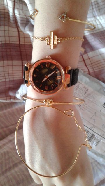 La montre est magnifique comme sur la photo, mais les bracelets sont très larges, et les bras sont assez dégagés, finissent par repasser l’autre.