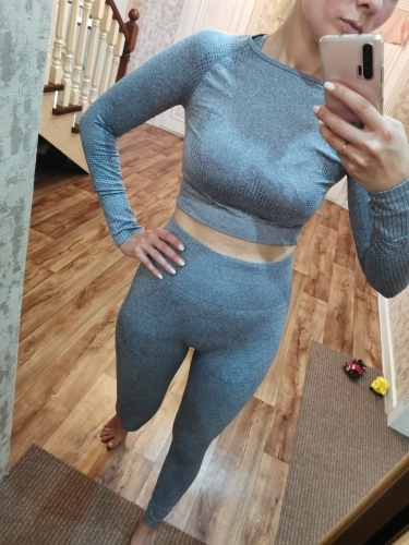Ensemble de vêtements de sport sans couture pour femmes – Vêtements de sport à manches longues et courtes – Leggings pantalon d’entraînement.