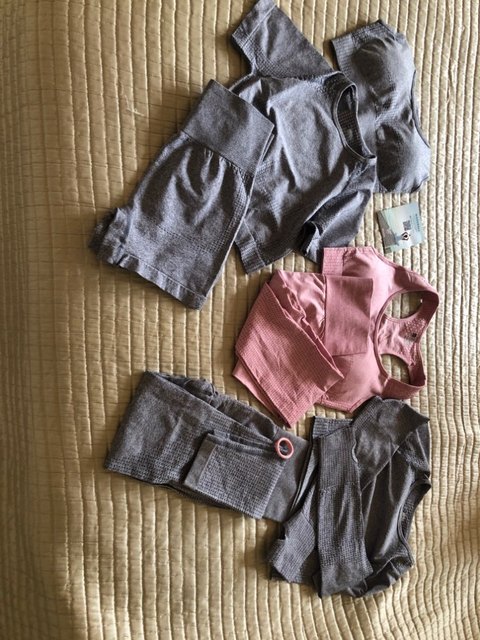 Ensemble de trois pièces de sport sans couture pour femmes. C’est l’ensemble idéal pour vos entraînements et séances de sport en salle ou en plein air.