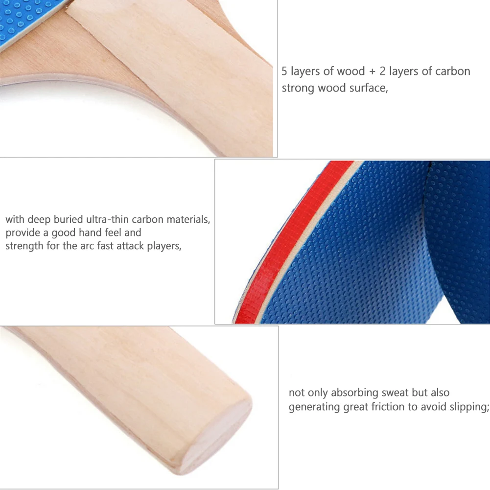 5 couches de bois + 2 couches de carbone ultra-mince , surface en bois solide. Ces poignés offrent une bonne sensation à la main. Ils permettent aux joueurs d’attaquer rapide sans qu’ils glissent car ils absorbent la sueur;
