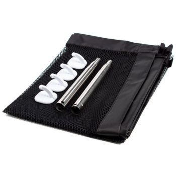 3. Insérez ces deux poteaux dans les tunnels des deux côtés du filet.