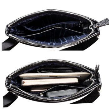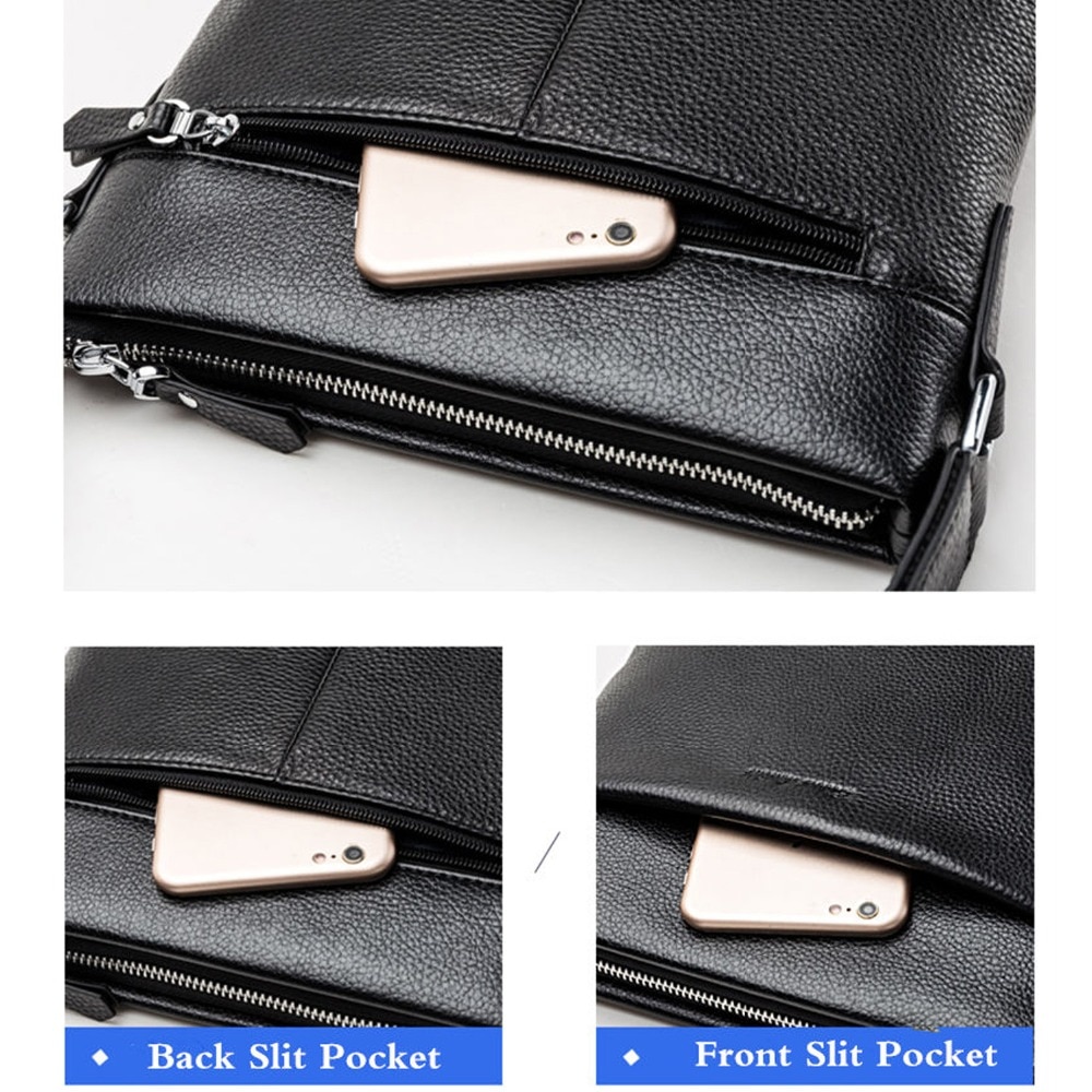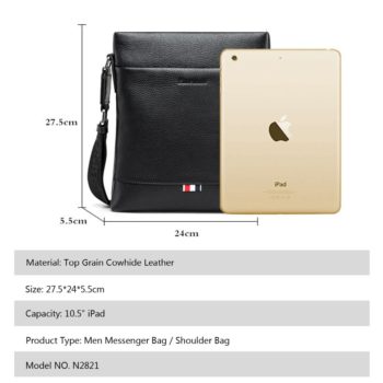 Modèle NON. N2821. Matière: cuir de vachette Grain supérieur. Taille: 27.5*24*5.5 cm. Capacité: 10.5 « iPad. Couleur: noir/café.
