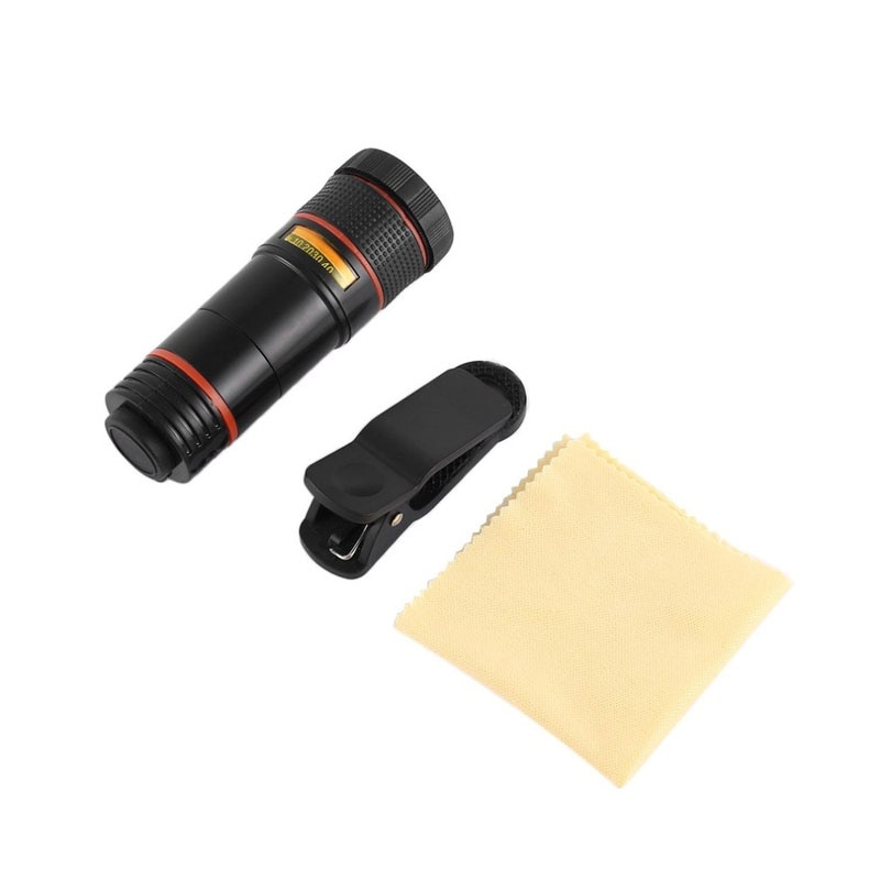Le produit comprend: un téléobjectif, une pince, un chiffon de nettoyage.