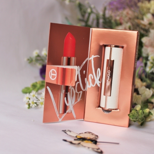 La livraison du rouge à lèvre a pris un peu plus de temps. Arrivé bien protégé dans un sac postal ainsi que dans un bel emballage de la marque. Sur la boîte il y a toutes les informations nécessaires en anglais, la date de péremption est jusqu’à 23 ans. Quand j’ai reçu la commande j’étais ravie! Très beau design, emballage, le rouge à lèvre en lui même est tout au top! Avec les photos du magasin, certes les différences et la teinte sont là, il est beaucoup plus clair en réalité, mais reste quand même très jolie sur les lèvres. Beau tube de rouge à lèvre lui-même s’ouvre aussi assez intéressant et extraordinaire. on appuie en bas sur le bouton et le haut du tube s’étend d’où on sort déjà le porte rouge à lèvre lui-même.