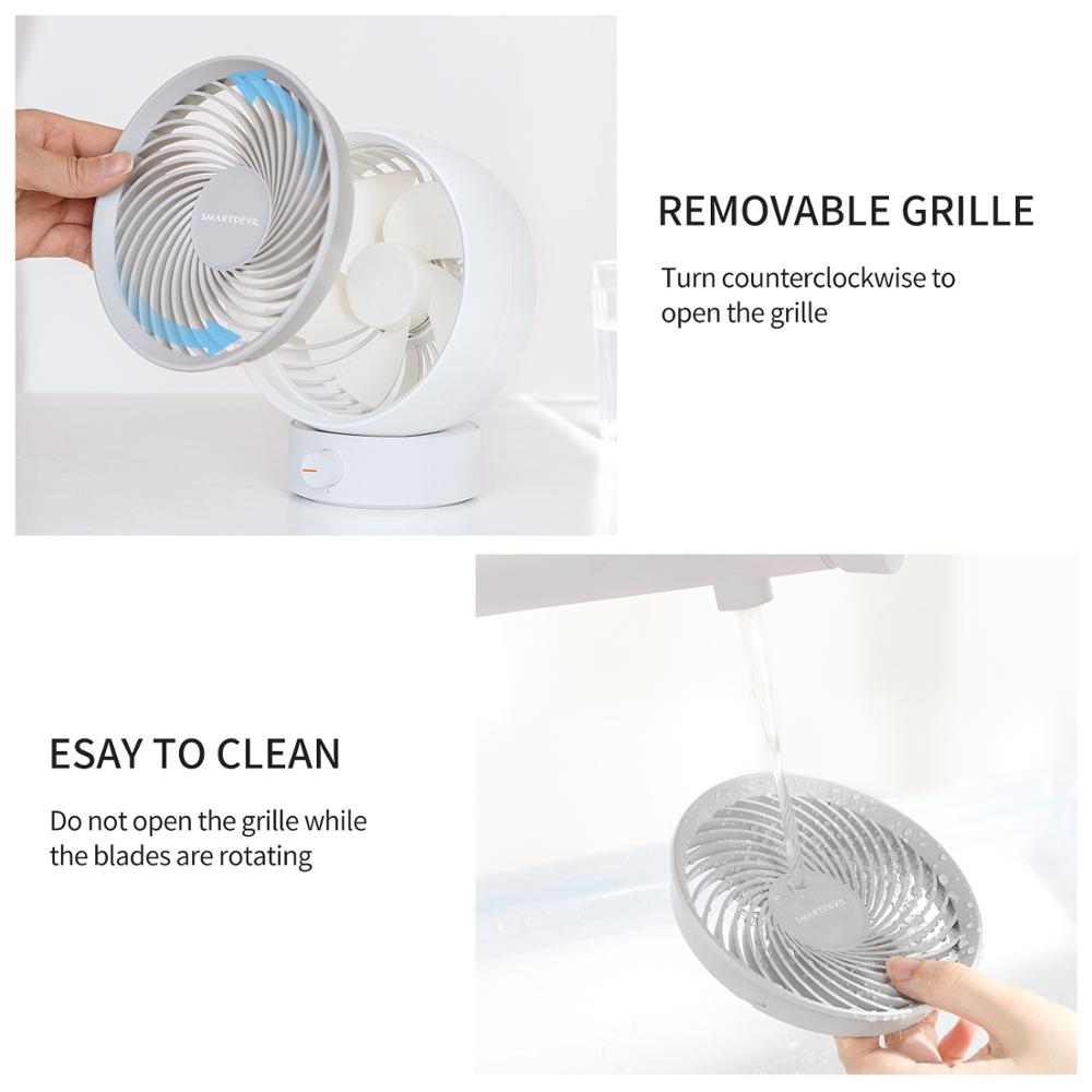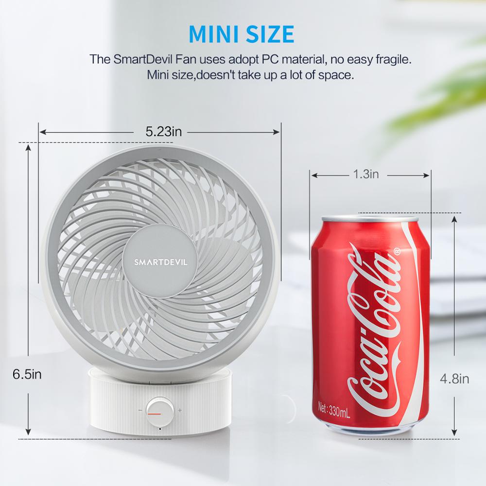 Le ventilateur de table SmartDevil est alimenté par USB. Vous pouvez le charger depuis un ordinateur portable, une alimentation mobile, un adaptateur secteur ou un chargeur de voiture.  Le ventilateur USB économise beaucoup de l’énergie et protègent l’environnement.
